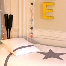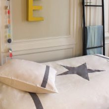 - – Une housse de couette pour lit junior 1 personne, blanche avec une étoile appliquée gris galet.